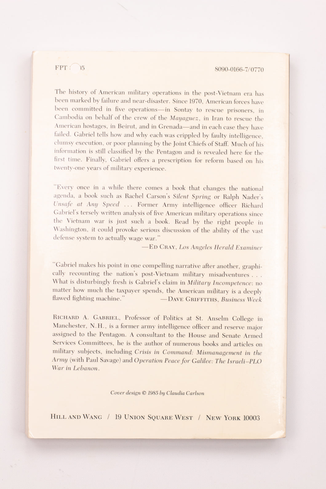 About: The history of American military operations in the post-Vietnam era has been marked by failure and near-disaster. Since 1970, American forces have been committed in five operations--in Sontay to rescue prisoners, in Cambodia on behalf of the crew of the Mayaguez, in Iran to rescue the American hostages, in Beirut, and in Grenada--and in each case they have failed. Gabriel tells how and why each was crippled by faulty intelligence, clumsy execution, or poor planning by the Joint Chiefs of Staff. Much of his information is still classified by the Pentagon and is revealed here for the first time. Finally, Gabriel offers a prescription for reform based on his twenty-one years of military experience.