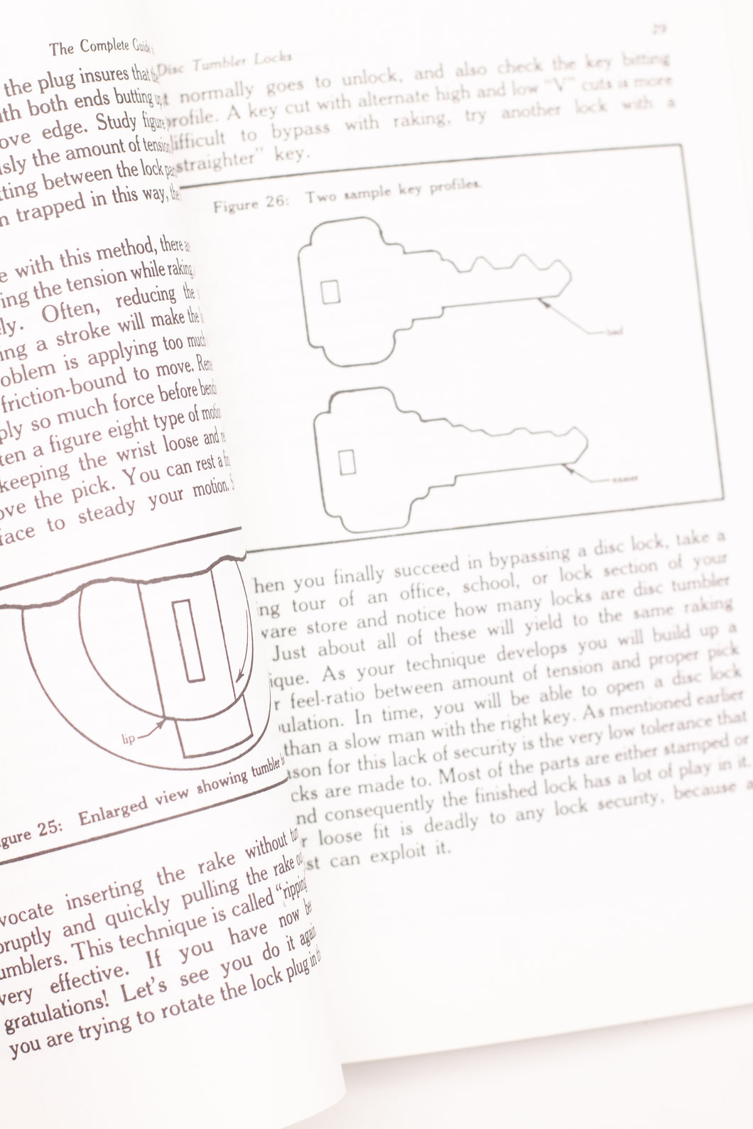 About: This book is the single finest manual on lockpicking ever written – over five years of research went into its preparation. Detailed, illustrated, step-by-step instructions are given for picking all the commonly found lock types. Also covered are various other ways of bypassing locks, how to mount practice locks, and more.