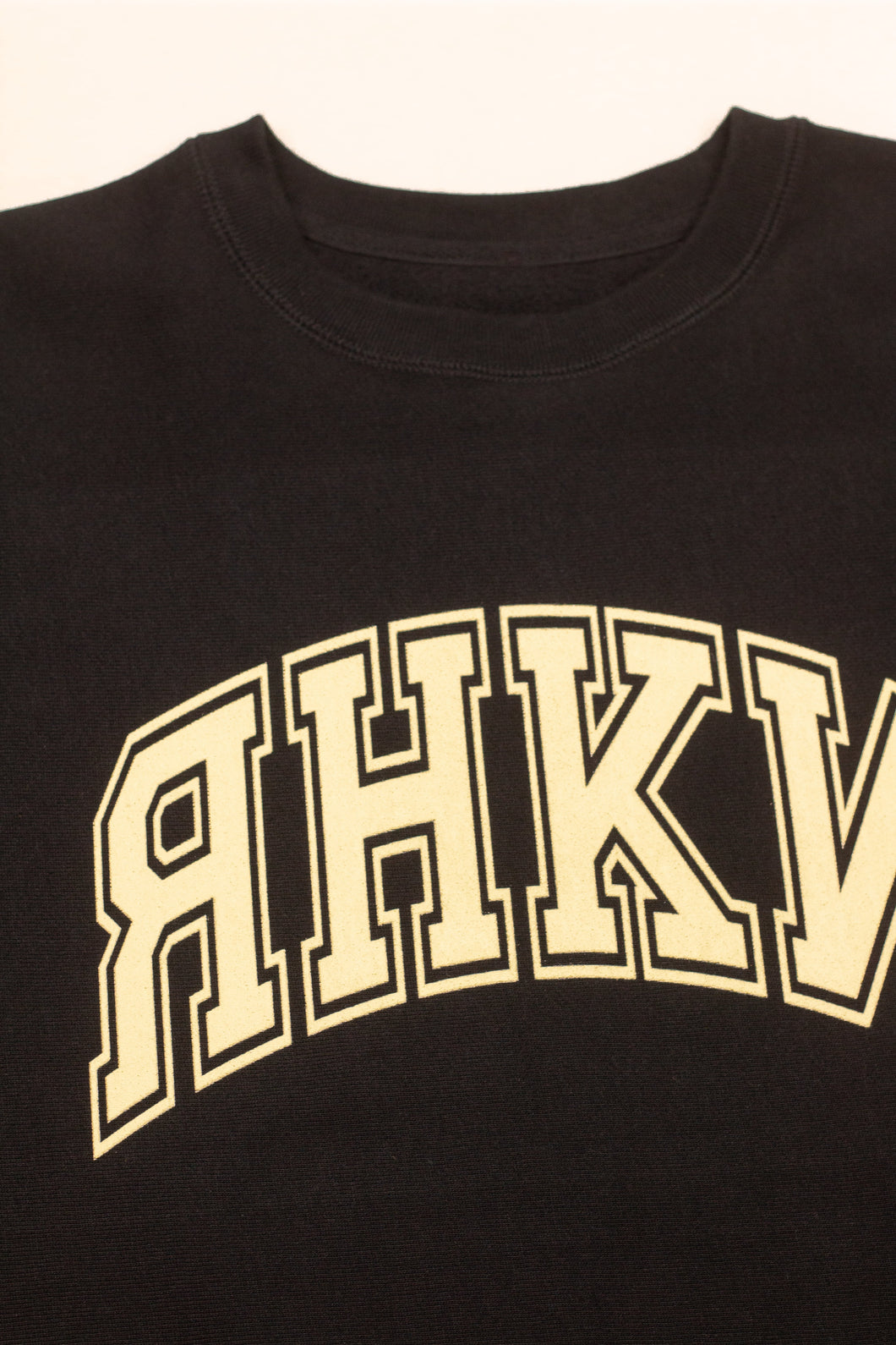 Black color crewneck with screen printed graphic on front